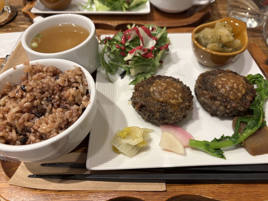 Went in for lunch and had a great set menu of pickles, rice, miso and burger with a salad, bread and humus on the side. Scone and coffee to end things.
