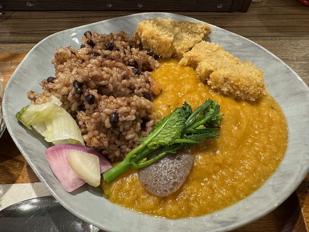 We ordered the curry set, cutlet burger and croquettes set. The menu clearly specifies vegan options. Everything was delicious. The burger bread was amazing! We also got the scones, chocolate fudge and chocolate tart for dessert, also delicious. On the pricier side but to be expected for an organic cafe.