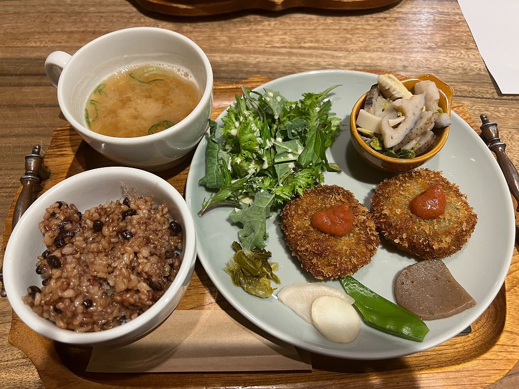 First of all I was thrilled to find a mostly vegan restaurant. All Japanese restaurants have been meat heavy. We had a lunch combo with vegan cutlets and a seitan sandwich. Both meals were delicious.