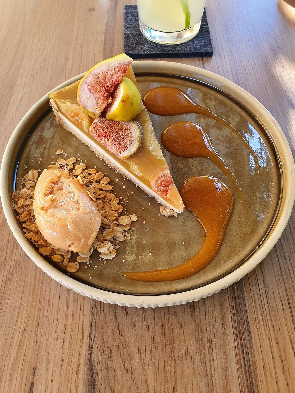 I'd give 5 stars for the vegan dishes I ate: Roasted cauliflower with chickpeas and herby walnut cream, Fig pie. Delicious, you have choices, waiter was very attentive to my questions. My husband went for traditional dishes and we were surprised that the portions were fairly big. I had refreshing limonade with citrus and without sugar. I can only recommend it. Tip: book your table.