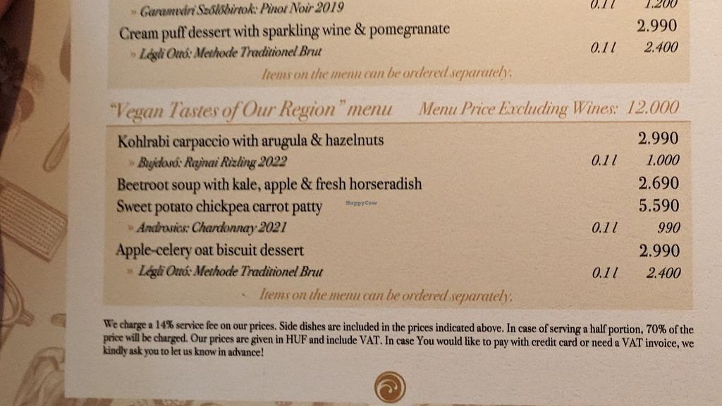 Serves meat, vegan options available. Traditional Hungarian restaurant offering a four-course vegan menu made from regional ingredients. Open Mon-Sun 11:00-23:00.