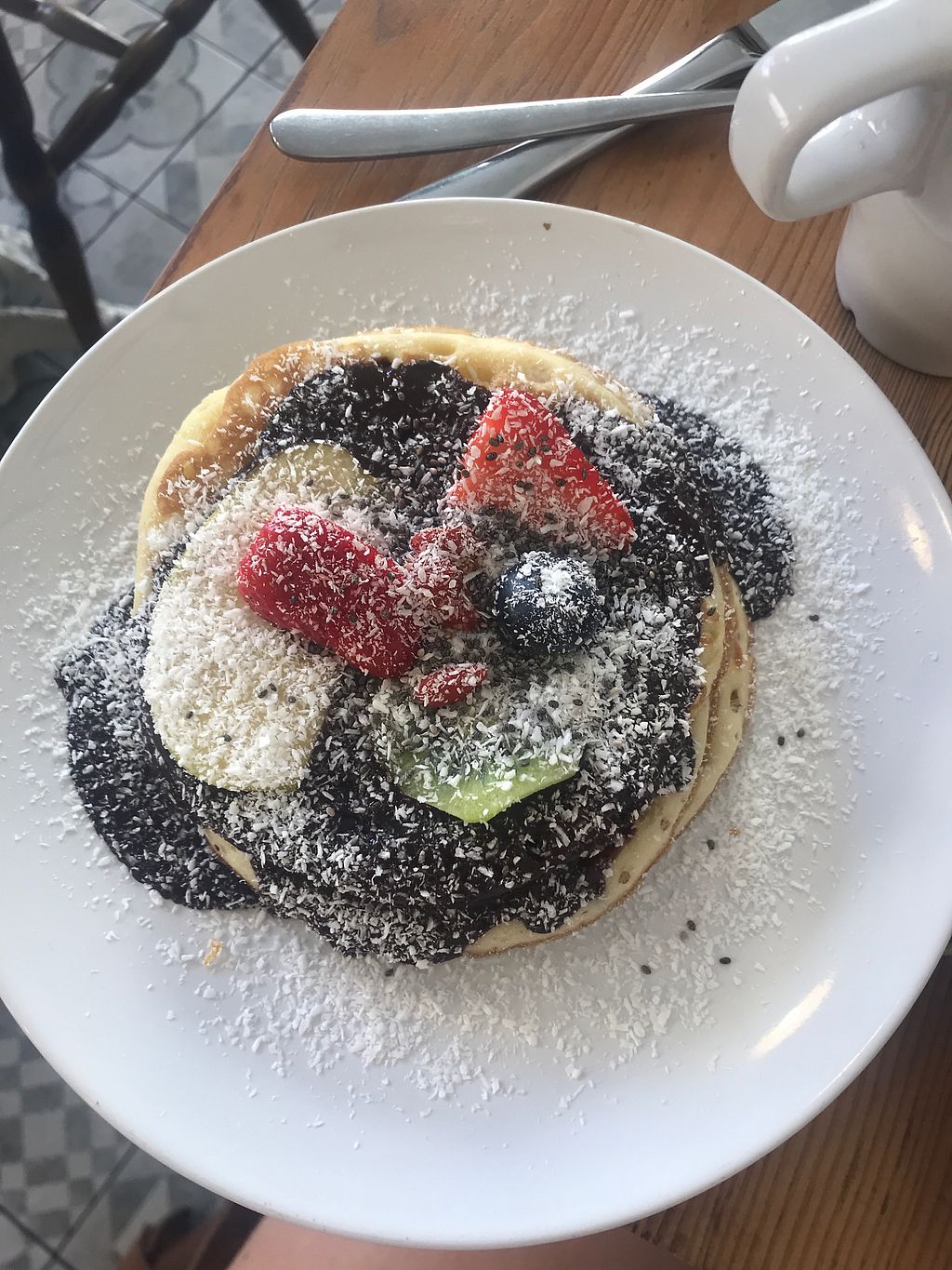 Went here for Sunday brunch - probably the best vegan brunch I have ever had. You get a fresh juice plus tea or coffee. Pancakes with chocolate or syrup. Then a finale of scrambled tofu, avocado on toast, roasted sweet potato and green leaf salad plus a granola and yoghurt with fresh fruit! I was stuffed! All of this was 22 euros. (I have posted photos).