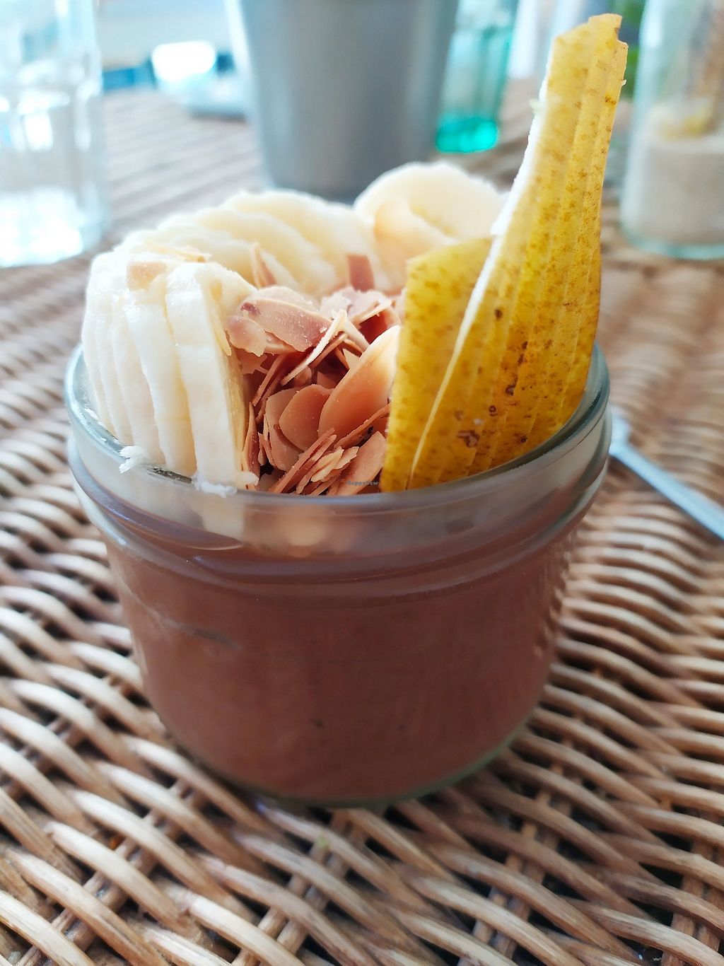 I was able to take a coffee (almond milk, orange blossom), a good homemade fruit juice, a lemon poppy cake with strawberries, a chocolate mousse (Aquafaba) is also possible to take