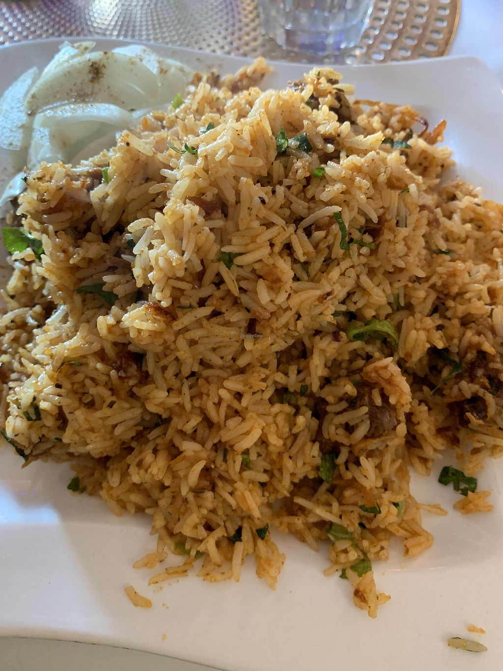 Read moreI chose the lamb biryani from the vegan menu. Other reviewers have mentioned the strange texture of the mock meats but I didn’t notice this. The “lamb” they use seems to be one of the vegan “mutton” products you can buy in many Asian grocery stores. Yes, it’s stringy but I’m used to it. I noticed that the mock chicken dishes are cheaper and guessed they might use cheaper, dehydrated “soy chunks” in these dishes.
