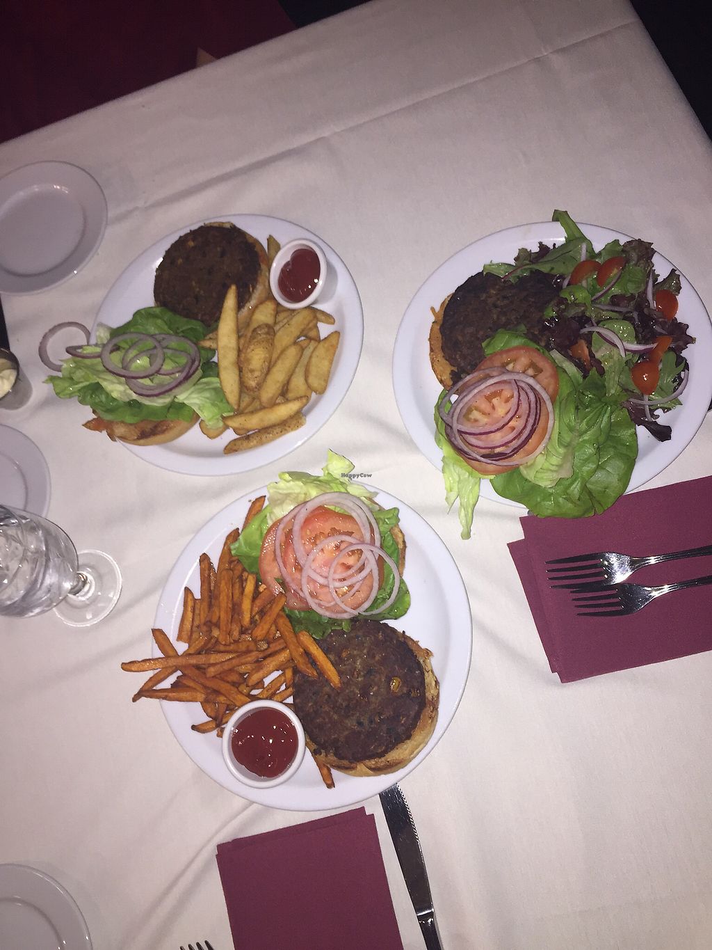 Burgers. Choose between salad, sweet potato fries and steak cut fries