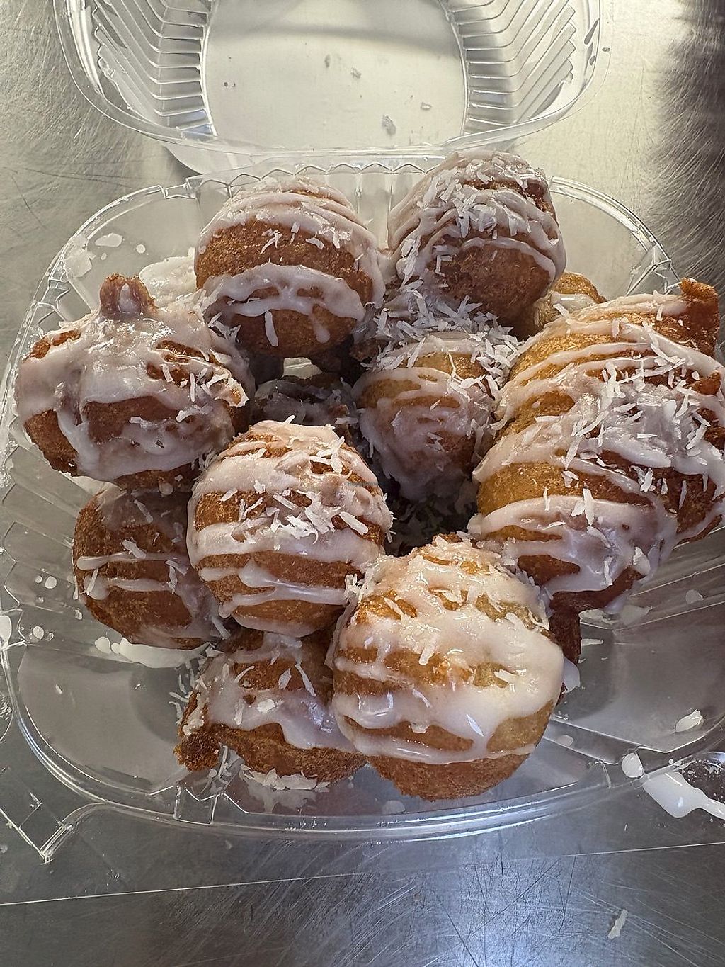 These are really fantastic vegan donuts with many different flavors. The owner is very allergy-conscious and avoids soy, corn, nuts, eggs, milk, butter, honey, and offers both wheat and gluten-free options. She fries the donuts in rice bran oil. She also has a second location at the Raleigh Farmer's Market on Saturdays from 10 AM to 5 PM. Well worth the stop!! These are the best vegan donuts I've ever had!