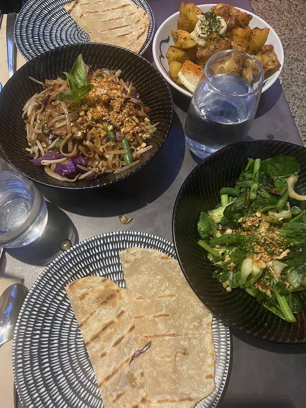 Overall I found the food good but not great. Loved that there were so many vegan options. My favourite dish ended up being the wok fried greens. Drunken noodles were 95% noodles with only a tiny amount of mushroom and cabbage. Fried tofu was okay but not strong in flavour. Potatoes weren't crispy at all. Both the mushroom noodles and the mushroom starter just had regular field mushrooms you get at the supermarket, but I would have expected some Asian mushrooms in there (as listed on the menu).