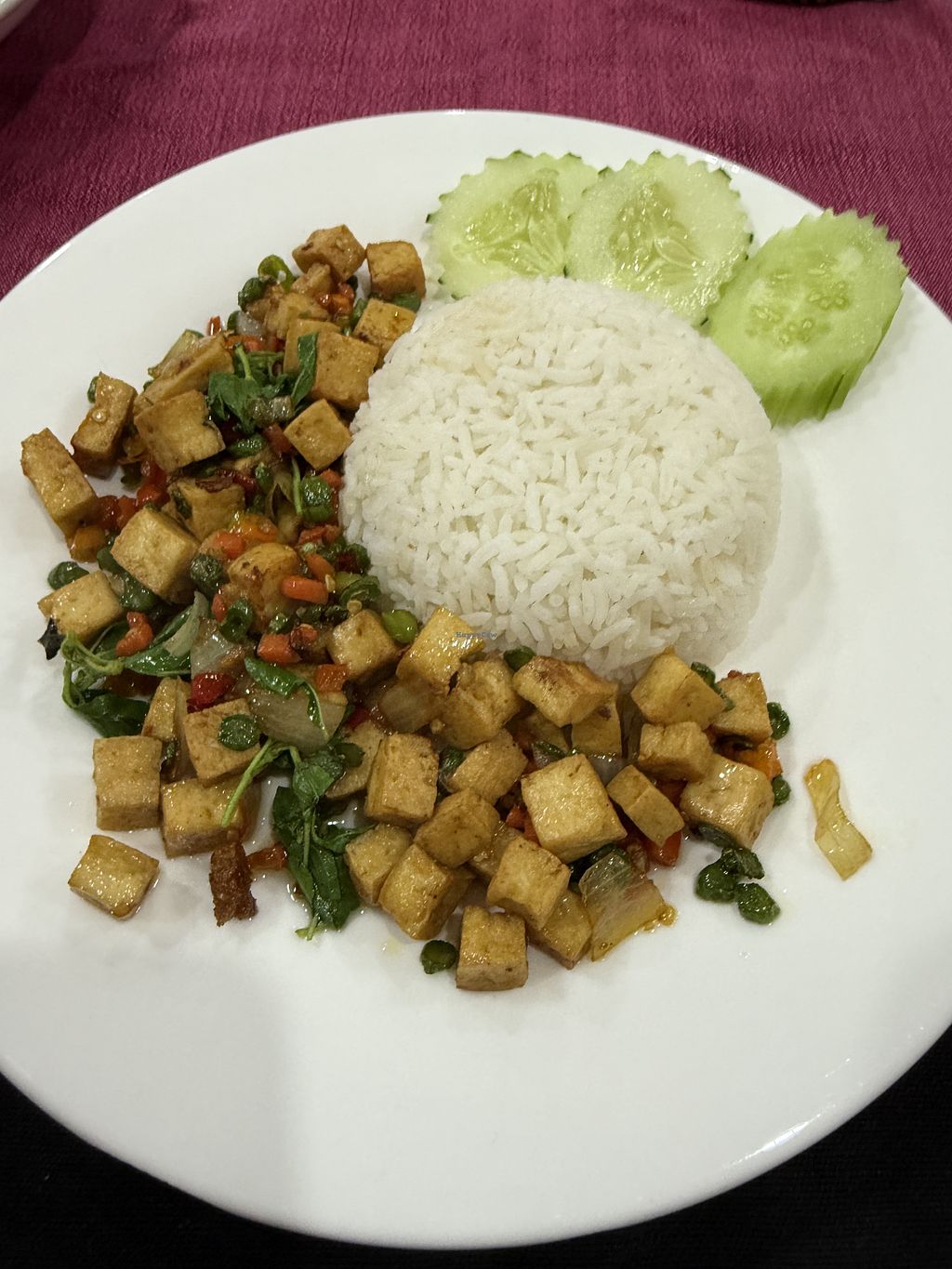 There are heaps of vegan options on the menu, you just need to let them know. The pad kra pow tofu is possibly the best I’ve had in a long time. The serving of tofu is the largest we’ve been served in Lao