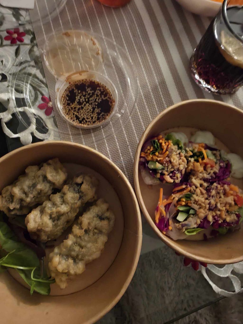 No chicken with gochujang sauce and twp tapas dishes (Pep and sweet po…