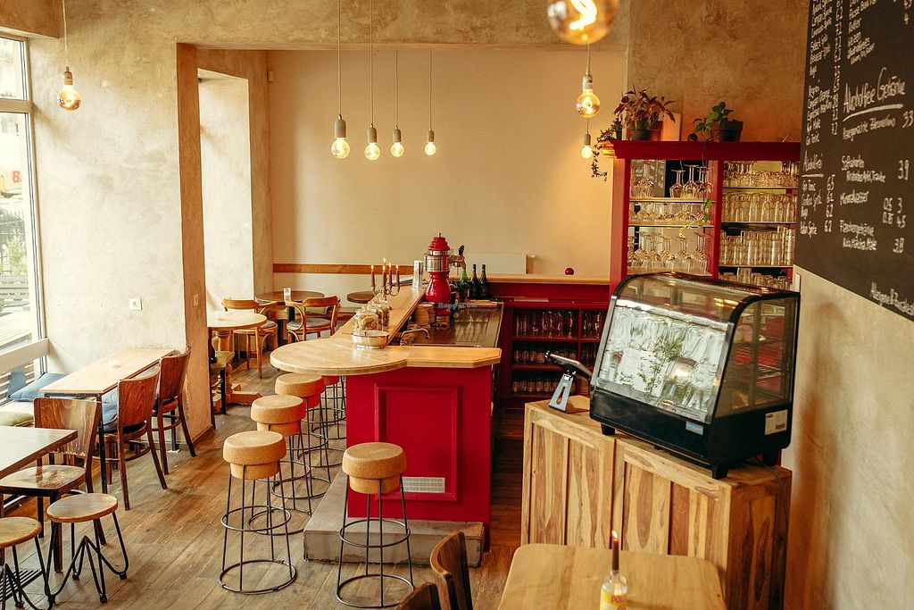 Vegetarian café serving vegan cookies, cakes, coffee with plant-based milk, sourdough bread with hummus, baba ghanoush, tofu, salad, and more. Open Mon-Thu 12:00-01:00, Fri-Sat 12:00-02:00, Sun 12:00-23:00.