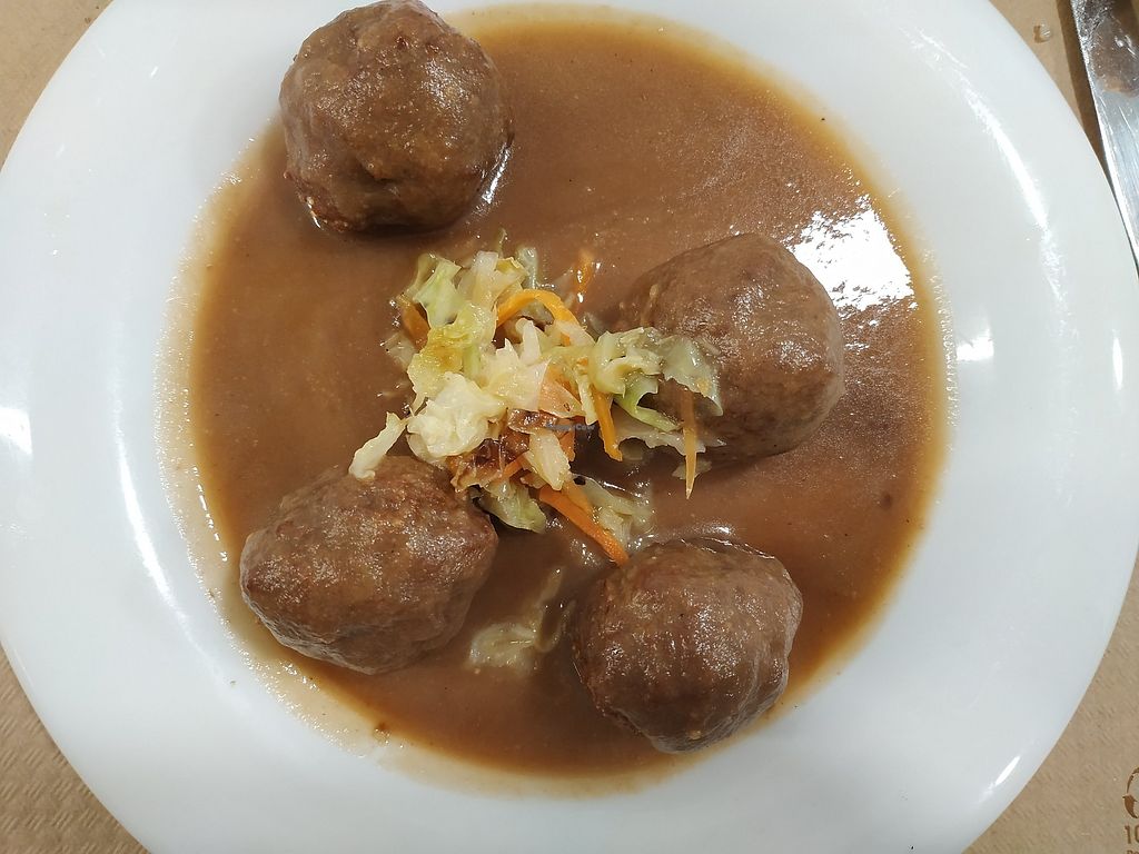 Albóndigas de bulgur y seitan con salsa de cebolla