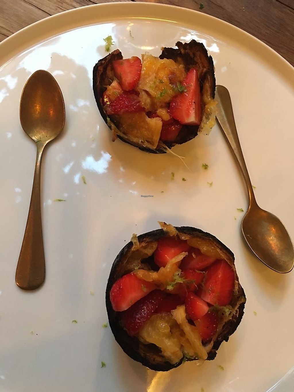 Desert: orange filled with strawberies