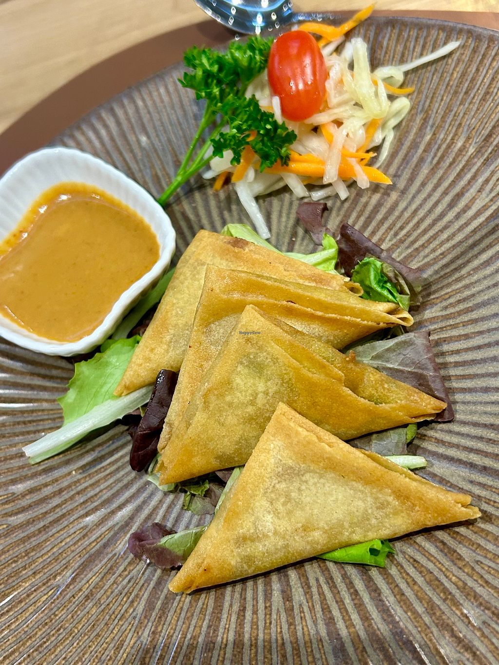 Serves meat, vegan options available. Thai restaurant offering a few items that are or can be made vegan such as samosa, yellow curry, red curry and green curry. Specify no oyster/fish sauce. Open Mon 12:00-14:30, 18:30-22:30, Wed-Sun 12:00-14:30, 18:30-22:30. Closed Tue.