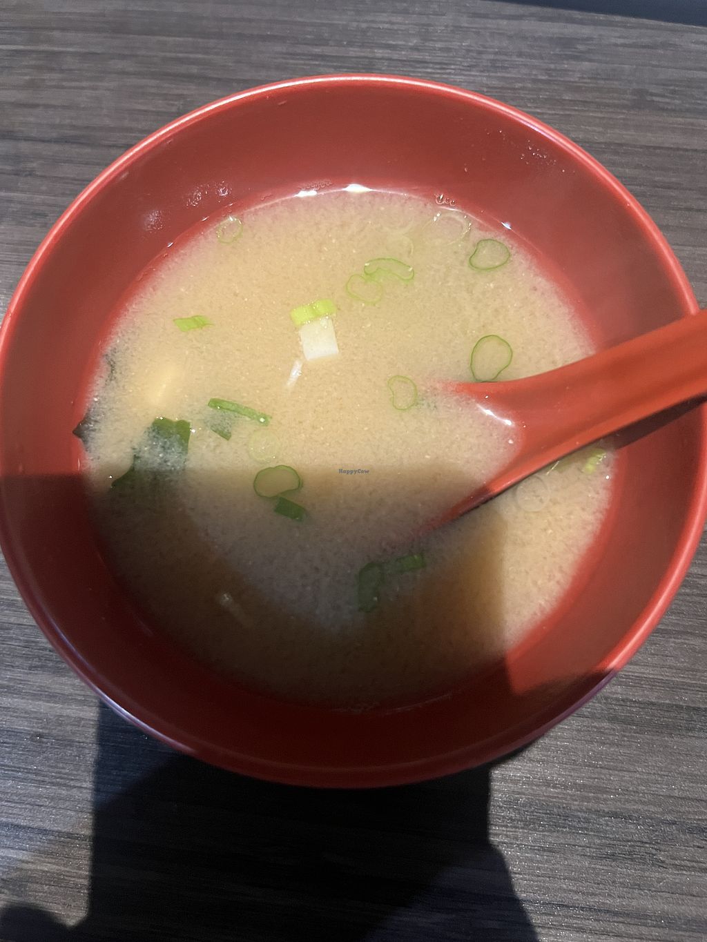 Excellent choice of restaurant today. I started with the miso soup and it was warm and had an excellent umami flavor. There was plenty of seaweed, green onions and tofu. No skimping here.