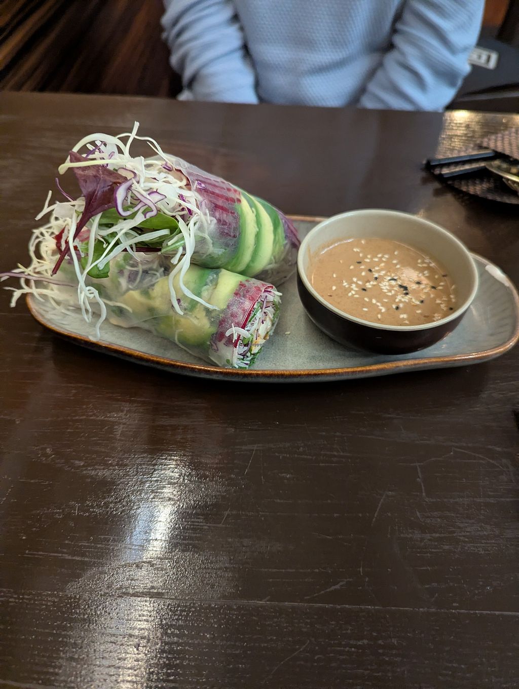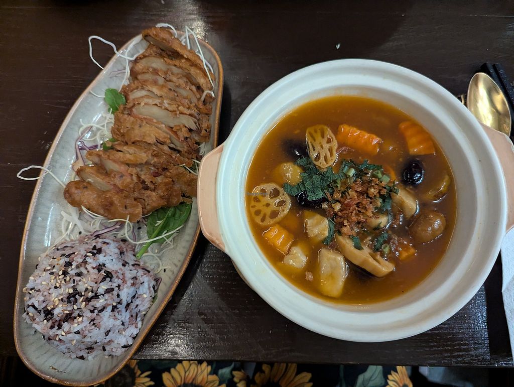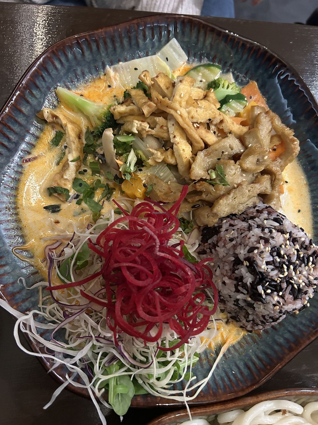 Vegetable bowl and peanut bowl, both with crispy “duck”
