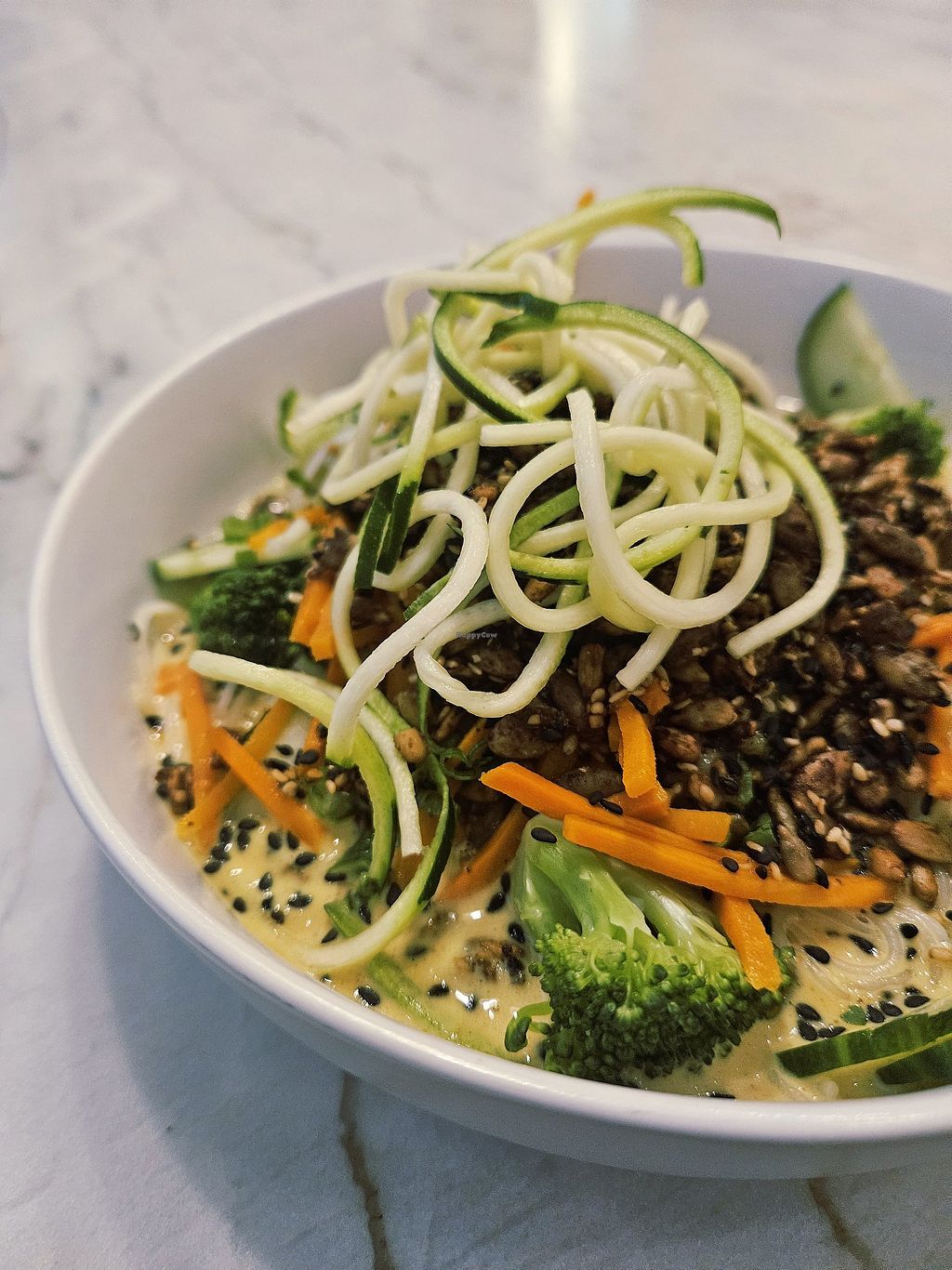 I ordered the Golden Laksa Noodles and really liked the flavor of the sauce, but two ingredients were missing entirely (carrots and croutons) and I was disappointed in the overabundance of rice noodles. There were very few veggies in the dish. Here's the dish description: coconut turmeric broth, rice zucchini noodles, ginger pickled carrot, broccoli, cucumber, green onion, cilantro, sunflower cracker croutons, lime. I wish I had ordered it to eat in the store as I'm sure they would have fixed it. It was very yummie though, and many items sounded good, so I'm going to give them a second visit to see how things turn out next time. Also can't wait to try the vegan Brie cheese I bought for home.