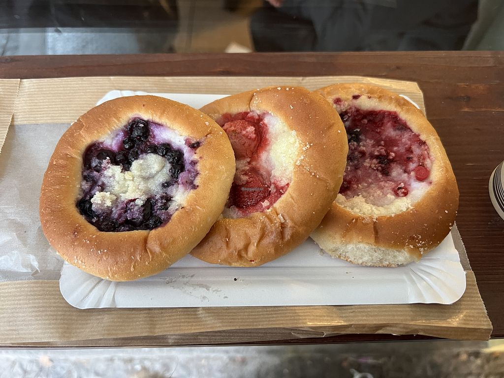 Read moreA separate tray clearly marked vegan held pastries : poppyseed and plum, forest fruits, blueberry were available today.