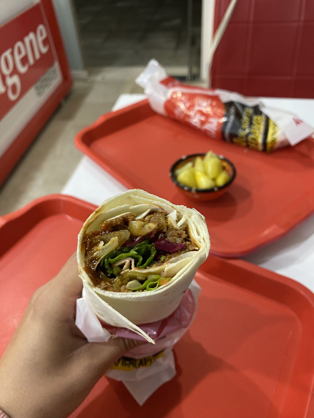 Part of Turkish fast food chain specializing in vegan chee koefte which is made of bulgur, walnuts, spices, and herbs and served in a sandwich, wrap, or box. Has falafel and nuggets as well. Food is vegan, but drinks and desserts may contain dairy. NOTE: Some locations are not vegetarian. If this location is not vegetarian please send in an update. Open Mon-Sun 12:30-22:30.