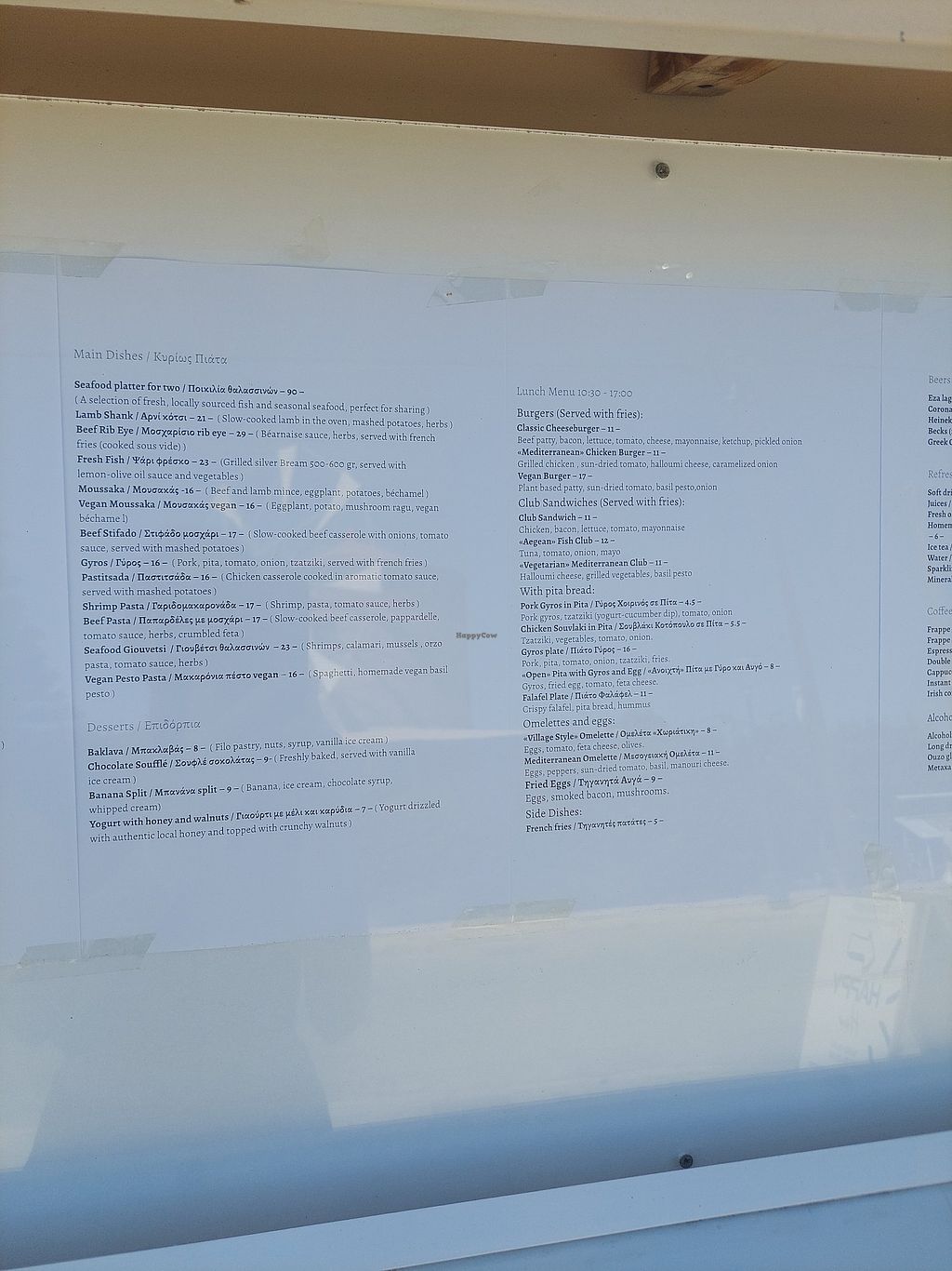 The restaurant is on the rooftop and has a lovely view of the sea. There were only a few vegan options, I chose the moussaka and it was delicious and had clearly been freshly made. We had to wait a while but it was worth it for the scenery and the food.