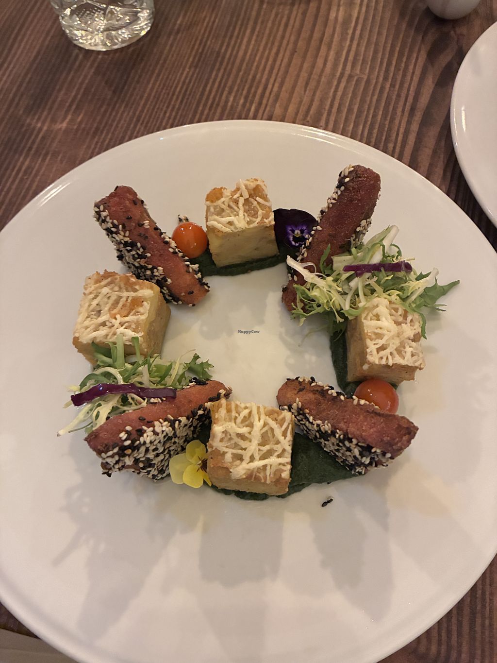 I ate the croquettes and the salmon. The croquettes are expensive for their quantity but they are tasty. The salmon plate was beautiful and delicious, the tofu really tasted a bit like sea, and the spinach and blue sauce were really good. The service was fast (i came at lunch around 2 tho) and the restaurant is spacious. I'd come back!