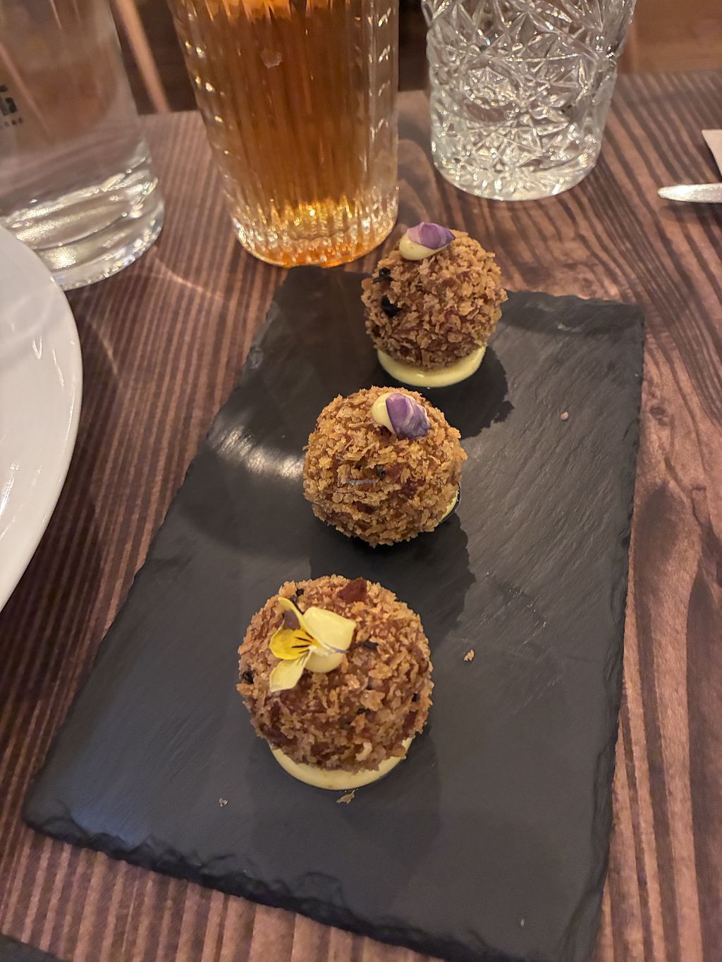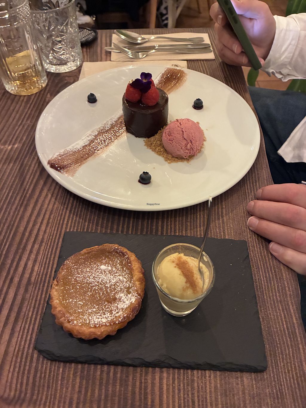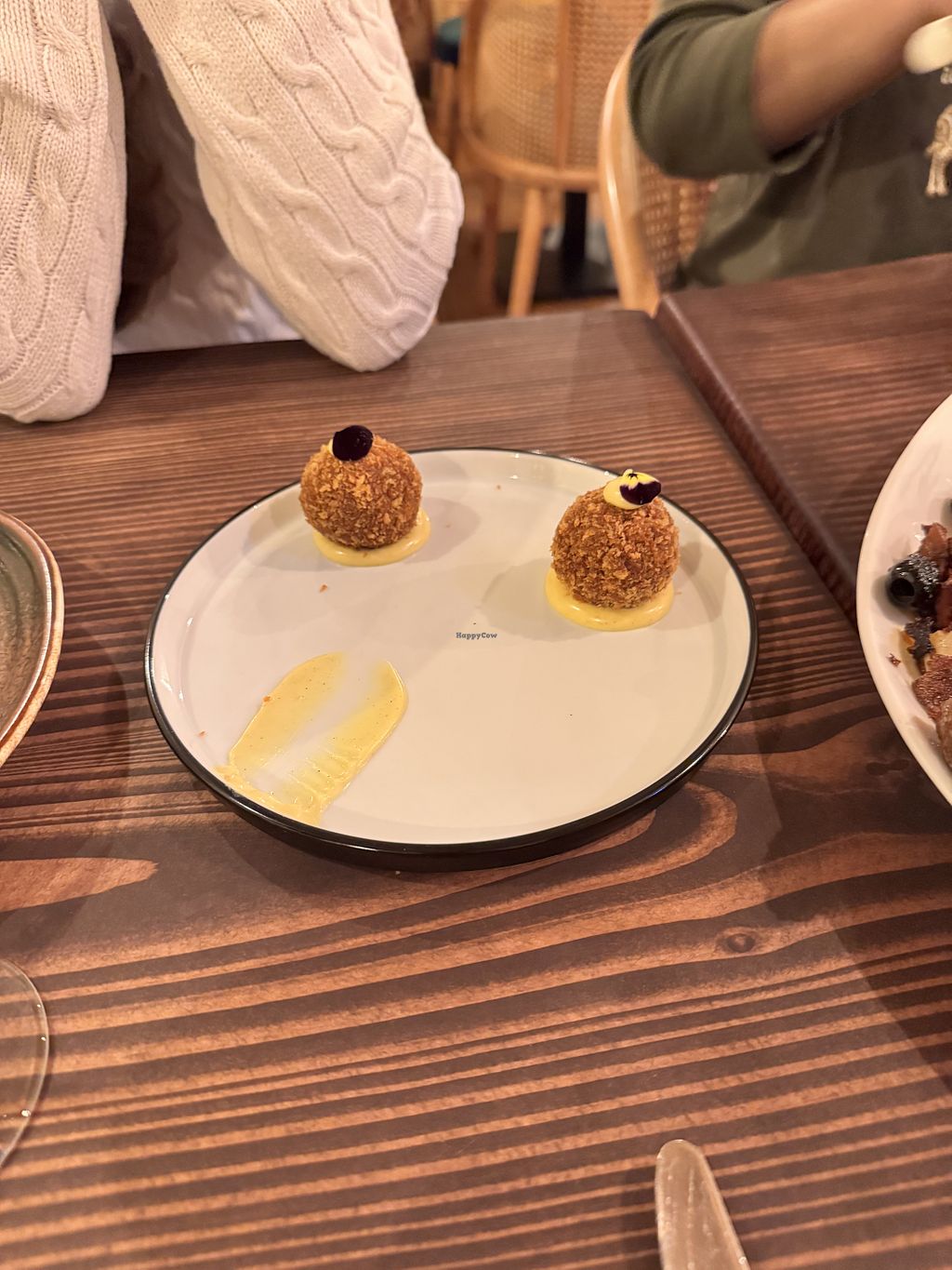 Ordered the croquettes to start with and shared them with my bf. Smaller than expected but tasty; full of flavour. We both ordered the vegan ribs with mash and both very much enjoyed it all. For dessert we ordered the nata tart with nata ice cream (yum!) like a warm hug. And the pistatio gateau with pistatio ice cream; nice but very rich! I’d definitely recommend the vegan ribs and the nata for dessert.