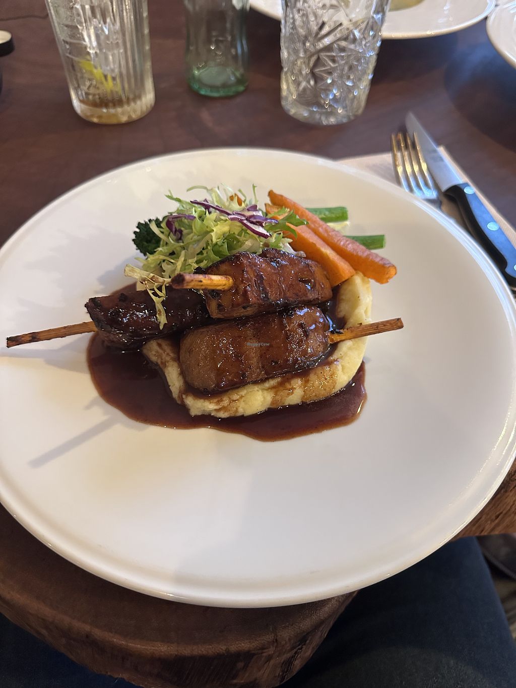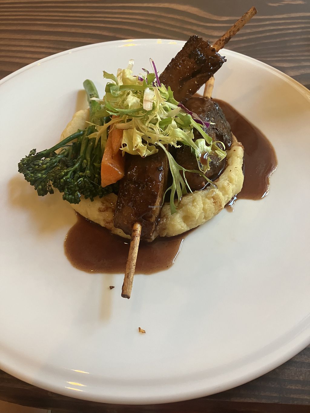 Ordered the croquettes to start with and shared them with my bf. Smaller than expected but tasty; full of flavour. We both ordered the vegan ribs with mash and both very much enjoyed it all. For dessert we ordered the nata tart with nata ice cream (yum!) like a warm hug. And the pistatio gateau with pistatio ice cream; nice but very rich! I’d definitely recommend the vegan ribs and the nata for dessert.