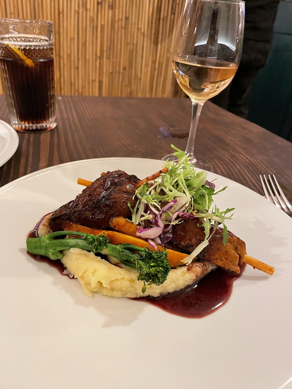 Had the ribs with red wine sauce, delicious. Cool atmosphere, amazing service.
