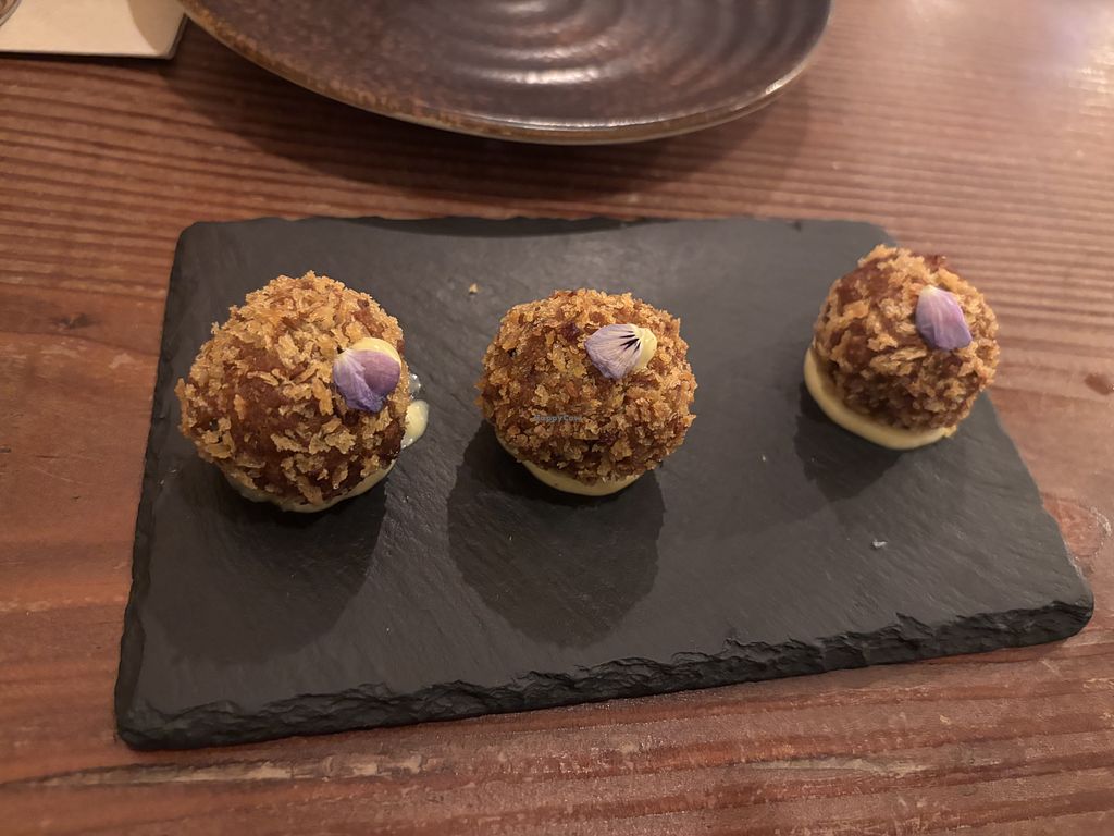 Ordered the croquettes to start with and shared them with my bf. Smaller than expected but tasty; full of flavour. We both ordered the vegan ribs with mash and both very much enjoyed it all. For dessert we ordered the nata tart with nata ice cream (yum!) like a warm hug. And the pistatio gateau with pistatio ice cream; nice but very rich! I’d definitely recommend the vegan ribs and the nata for dessert.