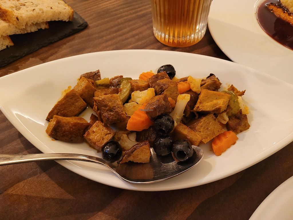 The food is mostly traditional Portuguese made completely vegan. Their seitan was awesome. We had the traditional Portuguese sandwich, Portuguese “seitan ribs”, and the ramen soup. Everything was very tasty.