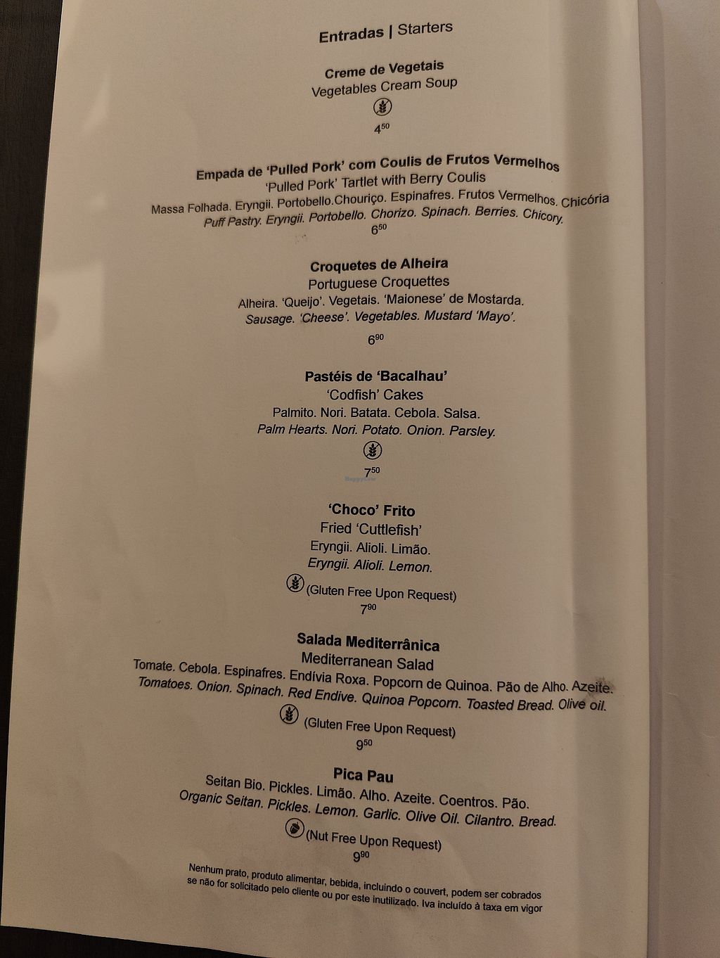 We had two portions of the ribs, the croquettes and the cuttlefish, but we felt there were better alternatives in Lisbon to this. Staff were very friendly and helpful. I think the real problem is that it’s made out to be the best vegan restaurant in europe, which I think might be a stretch.