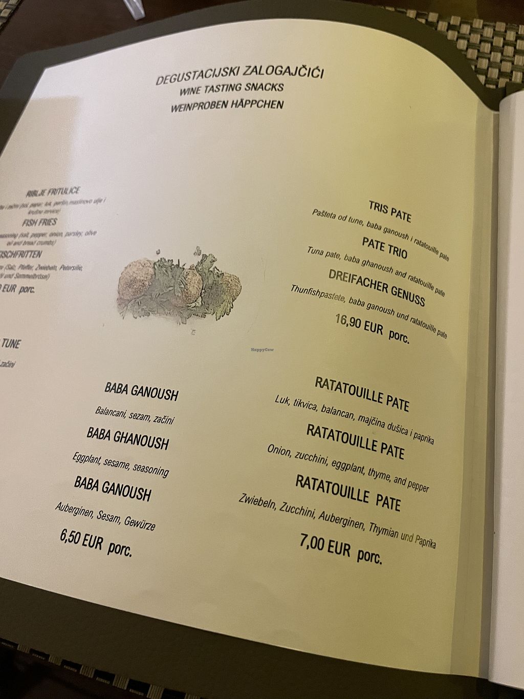 Serves meat, vegan options available. Vineyard with restaurant and outside terrace. Offers vegan choices such as salad, baba ganoush, ratatouille pate and other vegan dishes upon request. Open Tue-Sun 13:00-21:00. Closed Mon.