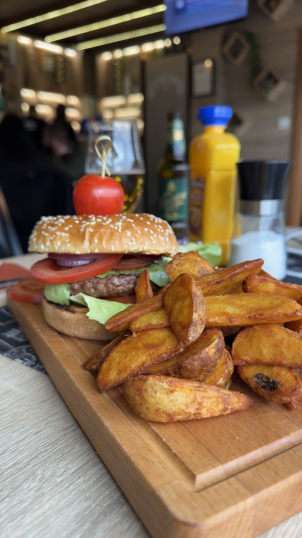 No vegan burger (the menu is not correct). The place is full of smoke, both the smoking and non smoking areas. Very slow service (it took 5jem 30 minutes for fries take away)