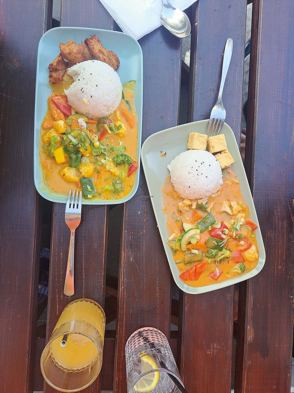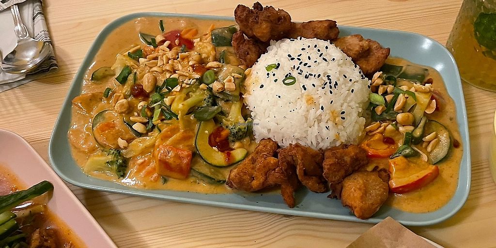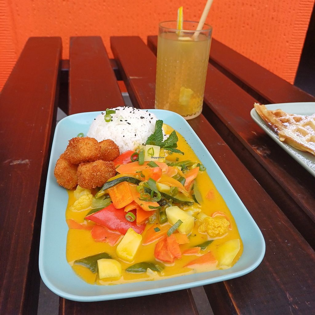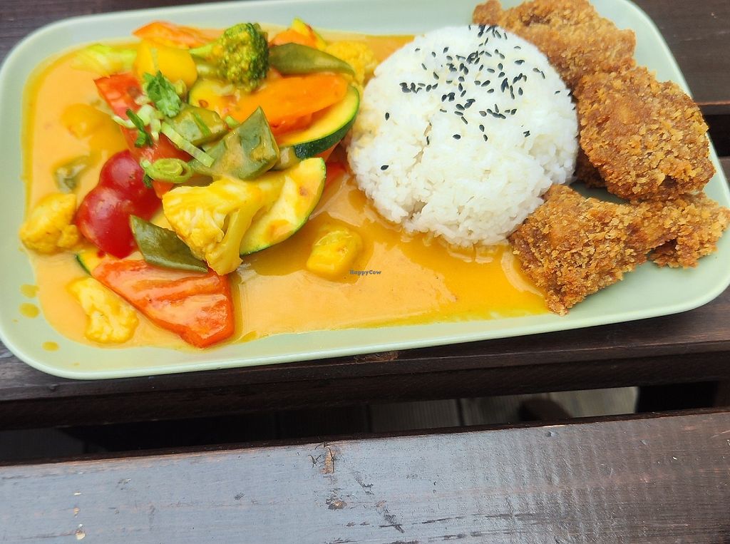 Spicy Mango Curry mit vegan Chicken Panko-Stylee
