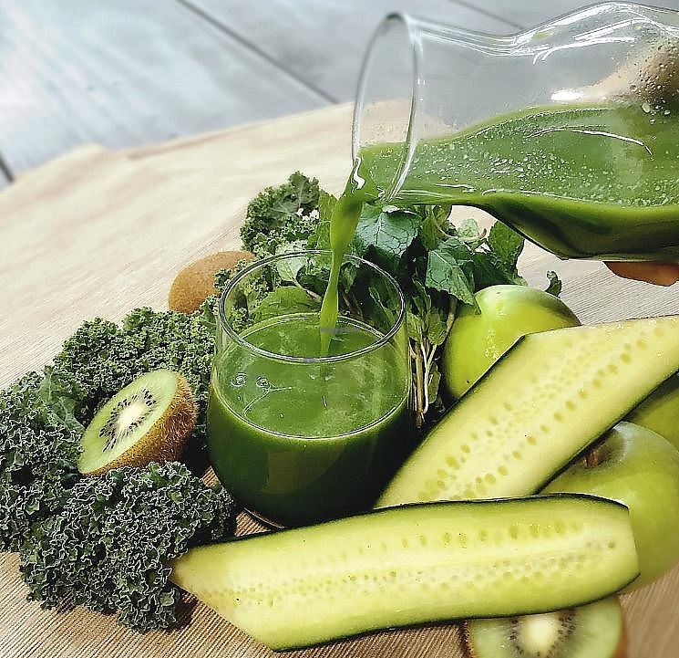 Kale and kiwifruit with cucumber, apple and mint