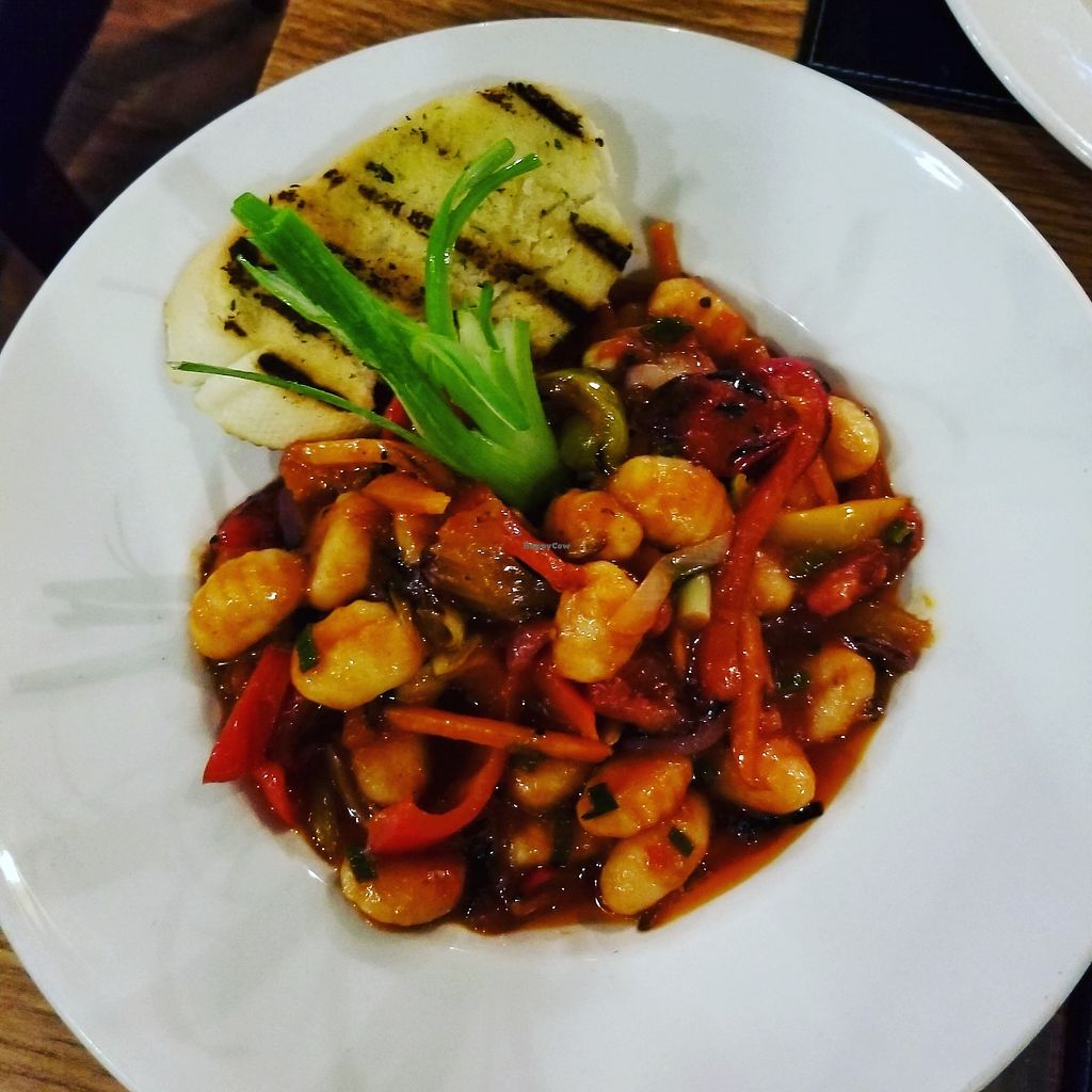 Read moreI had Jackfruit, Pineapple, Sweet Potato stir fry in a soya and black bean sauce with Plantain and Onion rings to was great Glenroy even made me a side dish of pickled hot peppers. It was great.