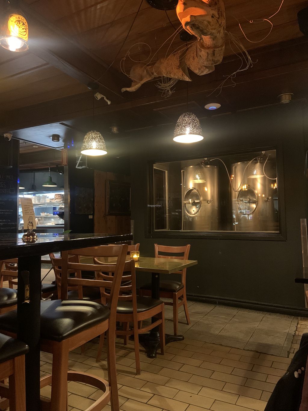 Une brasserie artisanale avec des choix de bières originaux (aux cornichons !) et quelques options véganes dans le menu dont une poutine à la bière (avec du seitan grillé) et un bretzel au jalapeno. Bonne ambiance dans le restaurant