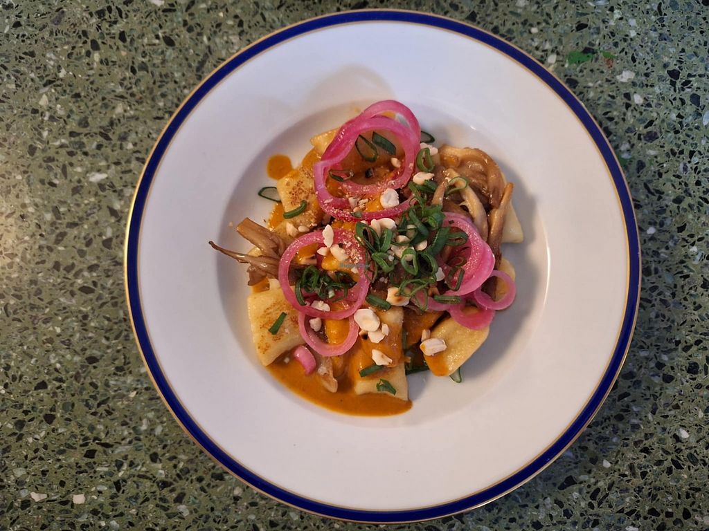 I’m so glad I visited this place! The interior was super cute with lots of plants and colored lighting. I came here with a group of people who aren’t vegan and we all really enjoyed it. I ordered the potato dumplings (kopytka) and they were delicious. My friend also enjoyed the winter soup which came with a piece of buttered bread. They had a good selection of drinks with the options of oat milk or pea milk for coffee. Our server was very friendly and the prices were reasonable. I would definitely recommend this restaurant and revisit if I’m ever in town again!