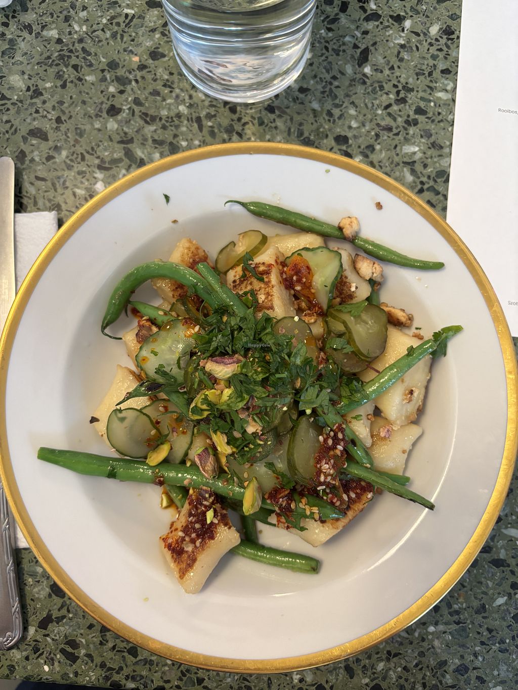 Lovely small restaurant with super tasty and beautifully presented dishes. I love the old plates! The menu is 100% vegan and you don't have to worry about ordering. The atmosphere is very pleasant and the staff were very friendly. The cheescake was awesome.