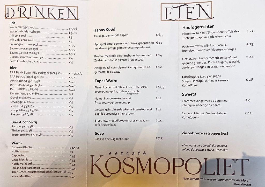 Pros: Veel keus, Uitgebreide bier/ drank kaart