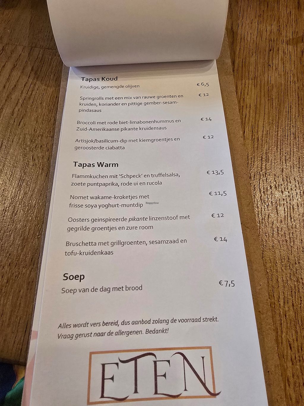 Read moreAlle tapas zijn vegan en 1 hoofdgerecht