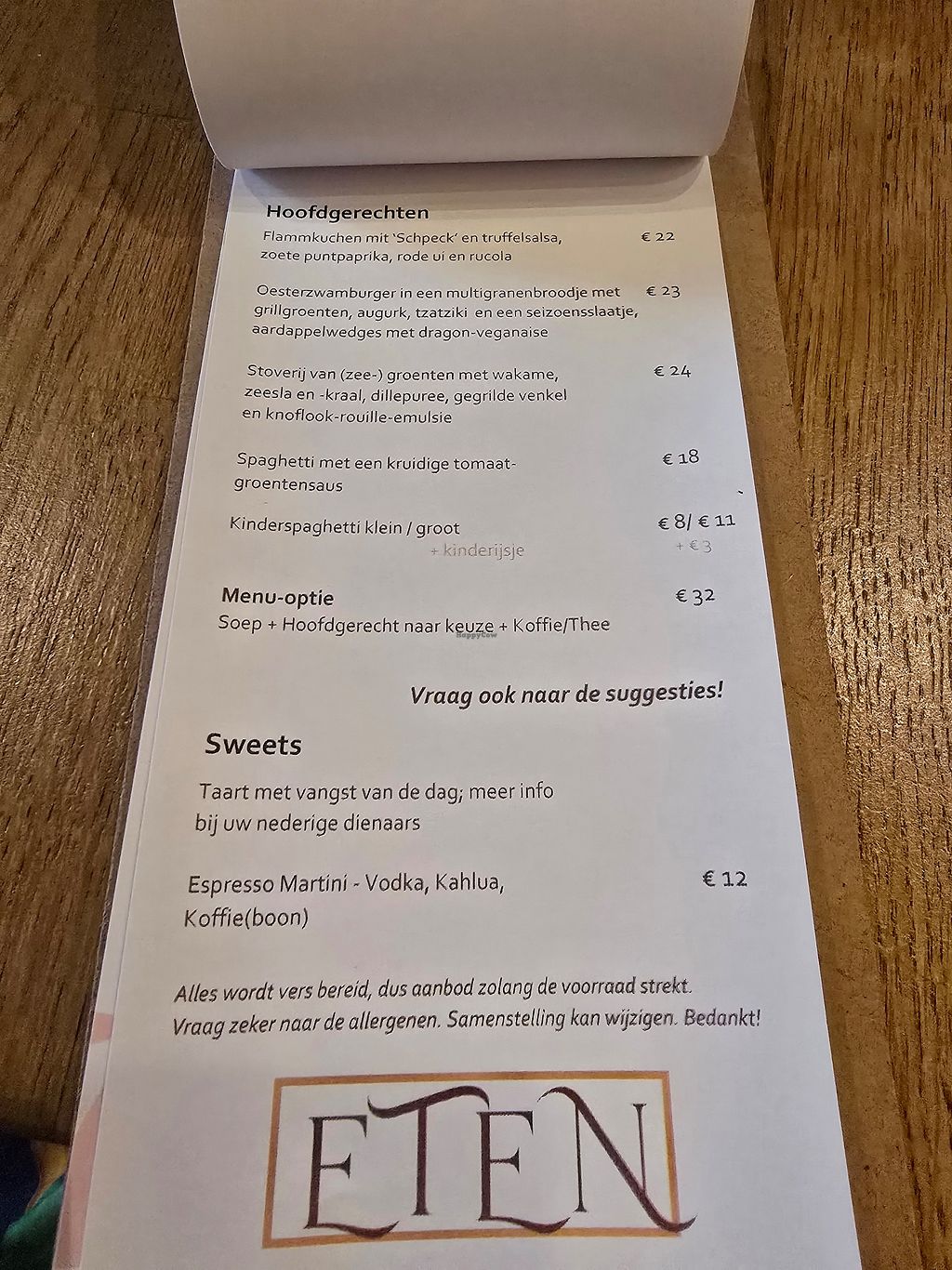 There was also a vegan dessert: apple crumble with whip cream 10€. Lovely but pricy.