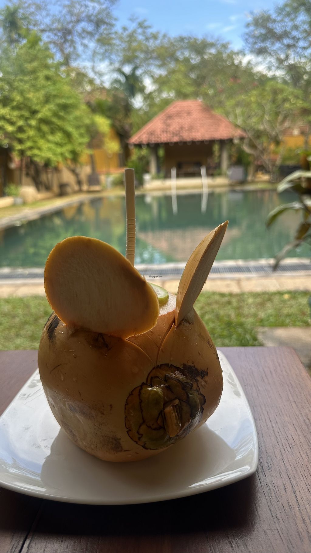 After arriving in Negombo, I discovered Koththamalli via Happy Cow app and could not have been more happy about it. It was a lovely way to begin my Sri Lanka experience. The food was delicious and the environment was even better. Compared to other options in the area, the prices are a little steep, but not unreasonable for what you get. I regret not getting images of my main meal, but everything looked so good, I dove right in. The spicy fruit and vegetable wrap was the perfect amount of kick and freshness. And my king coconut mouse by the pool was perfect blend of electrolytes and smiles after my flight.