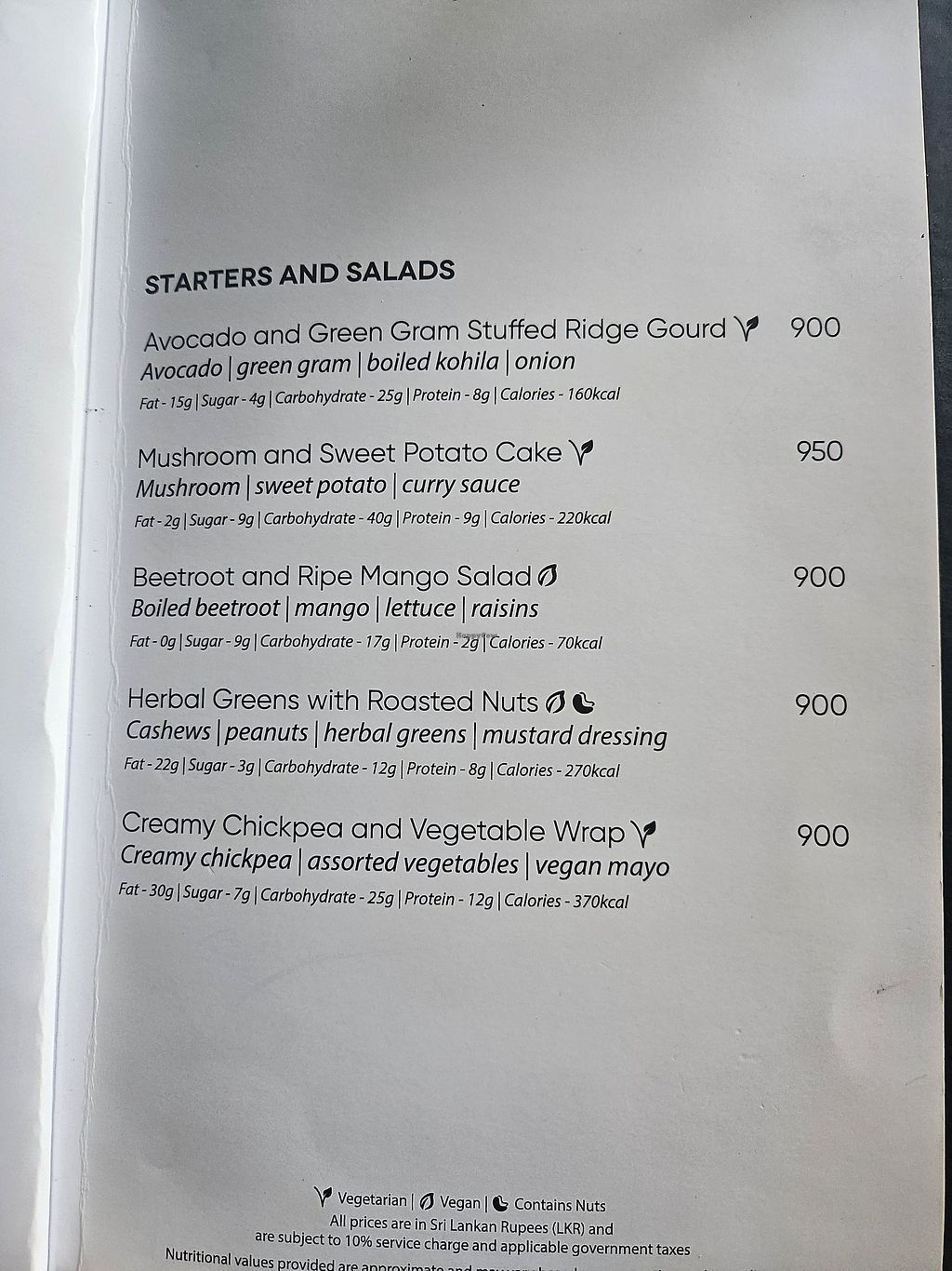 Pool-side restaurant serving Ayurvedic vegetarian cuisine. Some vegan starters, mains, and desserts with some containing honey and/or egg. Example dishes include rice platter with eggplant, jackfuit, dhal curries, salad as well veggie burger and fruit & veggie wrap. Reported open December 2023. Open Mon-Sun 12:30pm-10:00pm.