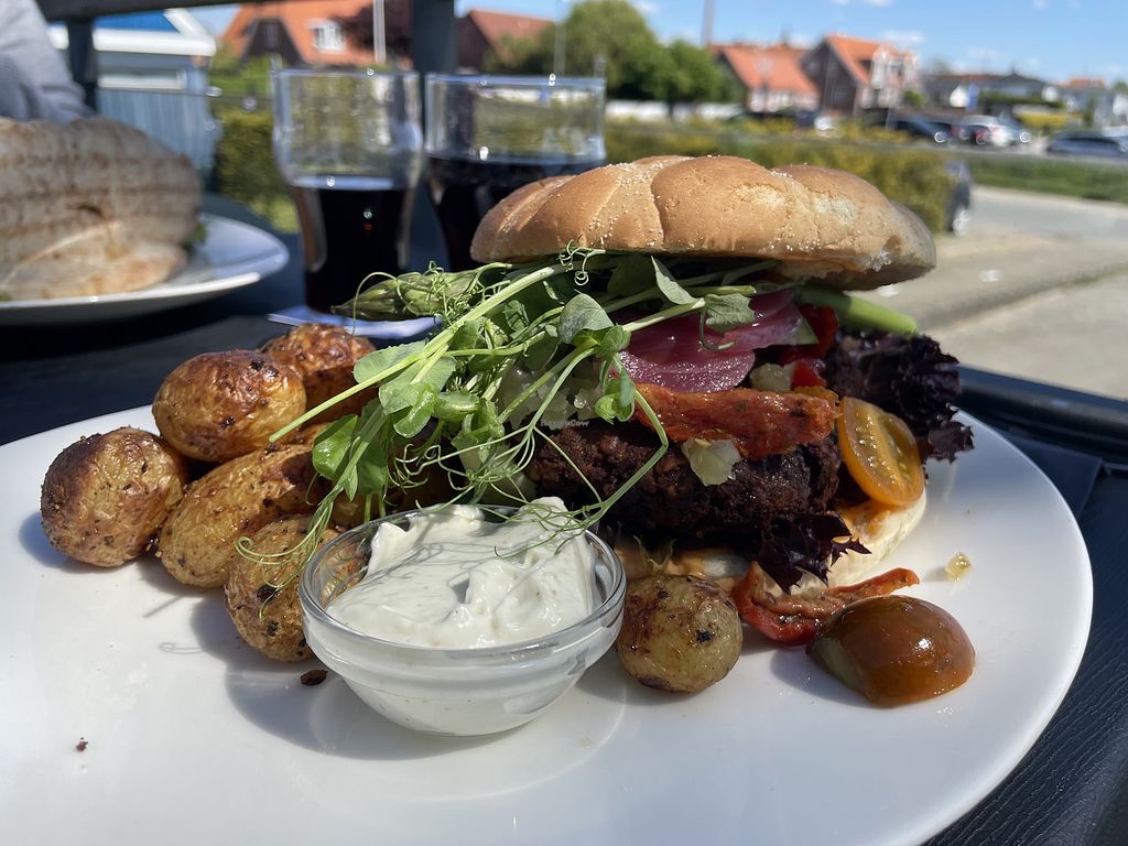 Serves meat, vegan options available. Small café near to Ringkøbing‘s harbour. Offers clearly marked vegan burger in two sizes and a falafel plate with hummus & vegetables. Open Mon-Sat 10:00-15:00. Closed Sun.