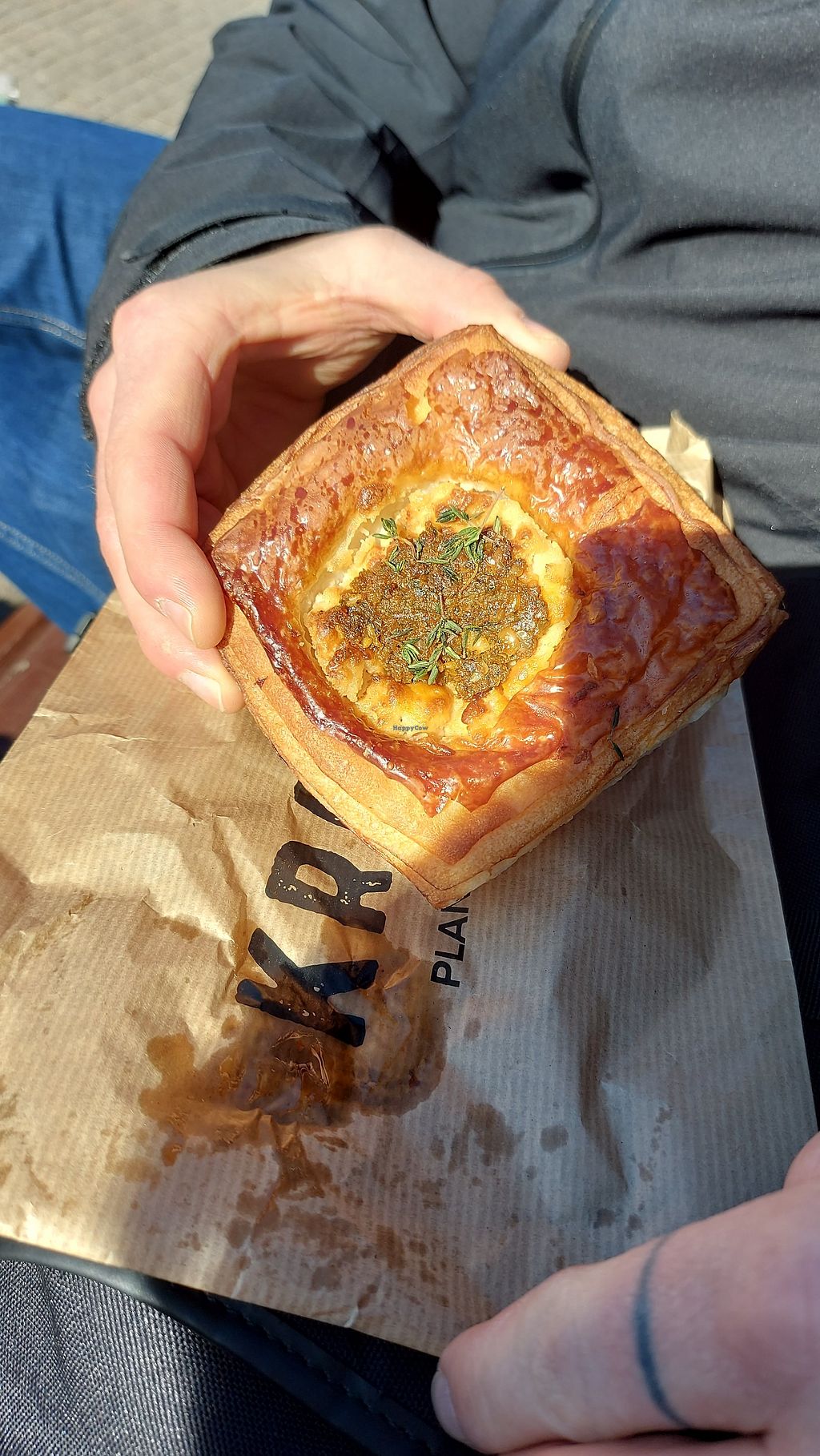Coffee and savoury pastry with tofu and pumpkin
