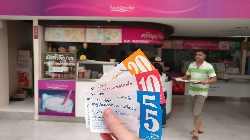 Read moreYou Exchange money for paper tickets at the food court go to the stall (called thai vegetarian) and write down your order for the chef who will make it.