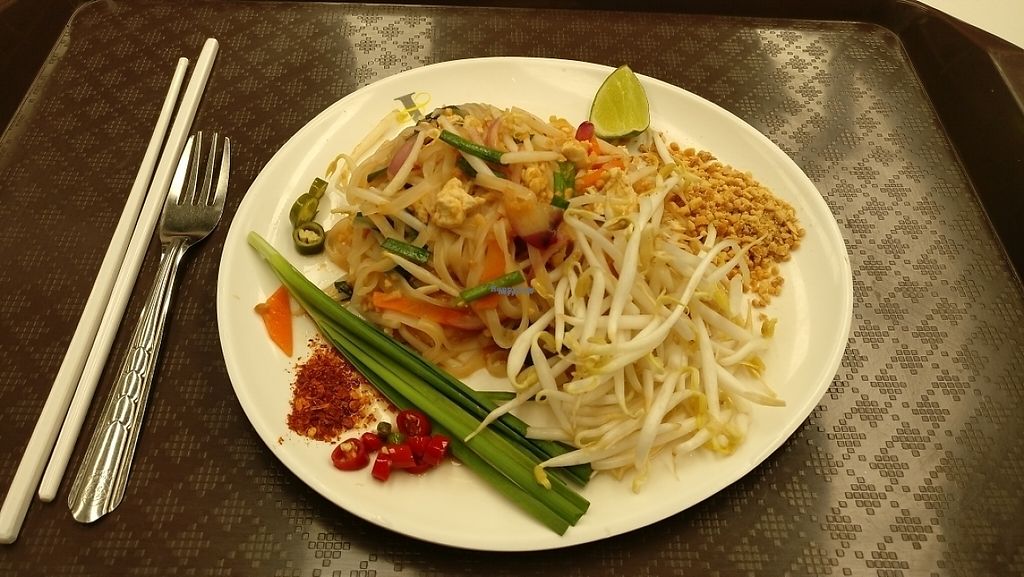 I ordered Pat Thai. It came with either egg or tofu (I never figured it out, since I don't eat eggs). I just left those pieces. The food was pretty good, and only cost 40 Baht (less than $2)!