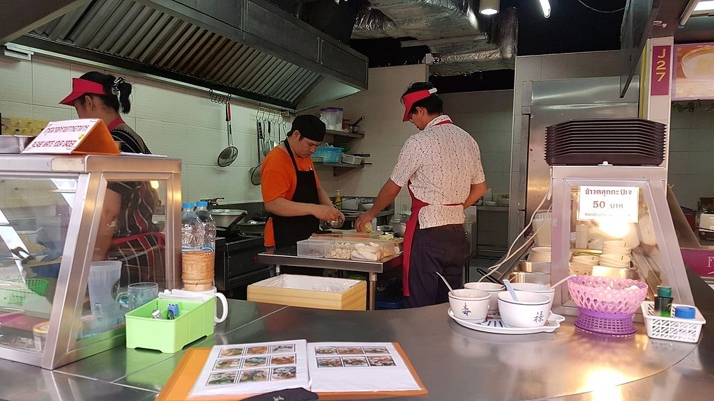 Meals are about 50 baht and good quality street-food style. No issues with taste! But they were so busy it took half an hour for the meals to be ready, which was difficult in a crowded food court.
