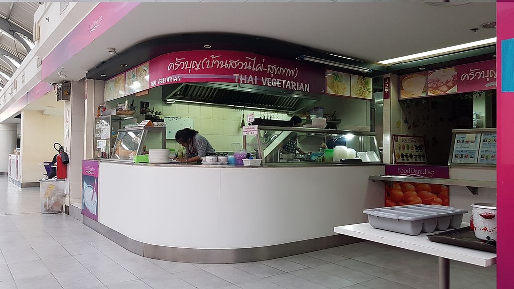 Read moreAnyway, on to the food...there's also an Indian Vegetarian restaurant in the 4th floor food court but I headed straight for Kran Boom, inspired by the listing here. I expected to see preprepared food I could point to and stood around looking confused for a few seconds when I saw only a few fried snacks and ingredients for juicing. The 6 or so staff working kinda did too until I said, "sawasdee kaaa" and someone handed me an English menu. The range was great and dishes priced between 40 and 60 baht which is cheap for cooked to order vegetarian food, even in a food court. Since it was my last day in Thailand, I couldn't help myself so ordered too dishes - the wonton and cucumber salad and tofu with pepper.