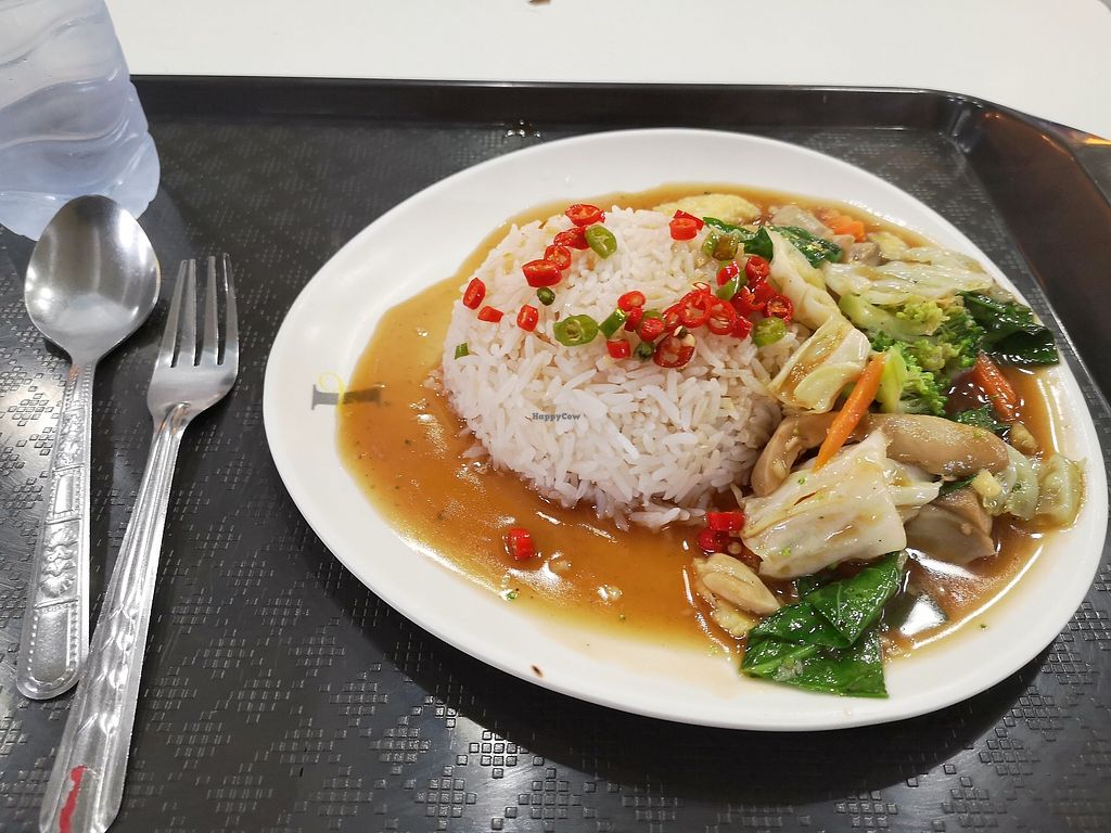 Located on the 4th floor of the India Imporium building. Any dish can be made Vegan upon request. The owner understands the word 'vegan'. Their Red curry is on point, it was by far the best I've had anywhere in the world. Majority of dishes priced from 50-80 Baht. Restaurant says 'Thai Vegetarian'. There aren't any 'Jae' flags out the front because they use onion and garlic in their cooking.